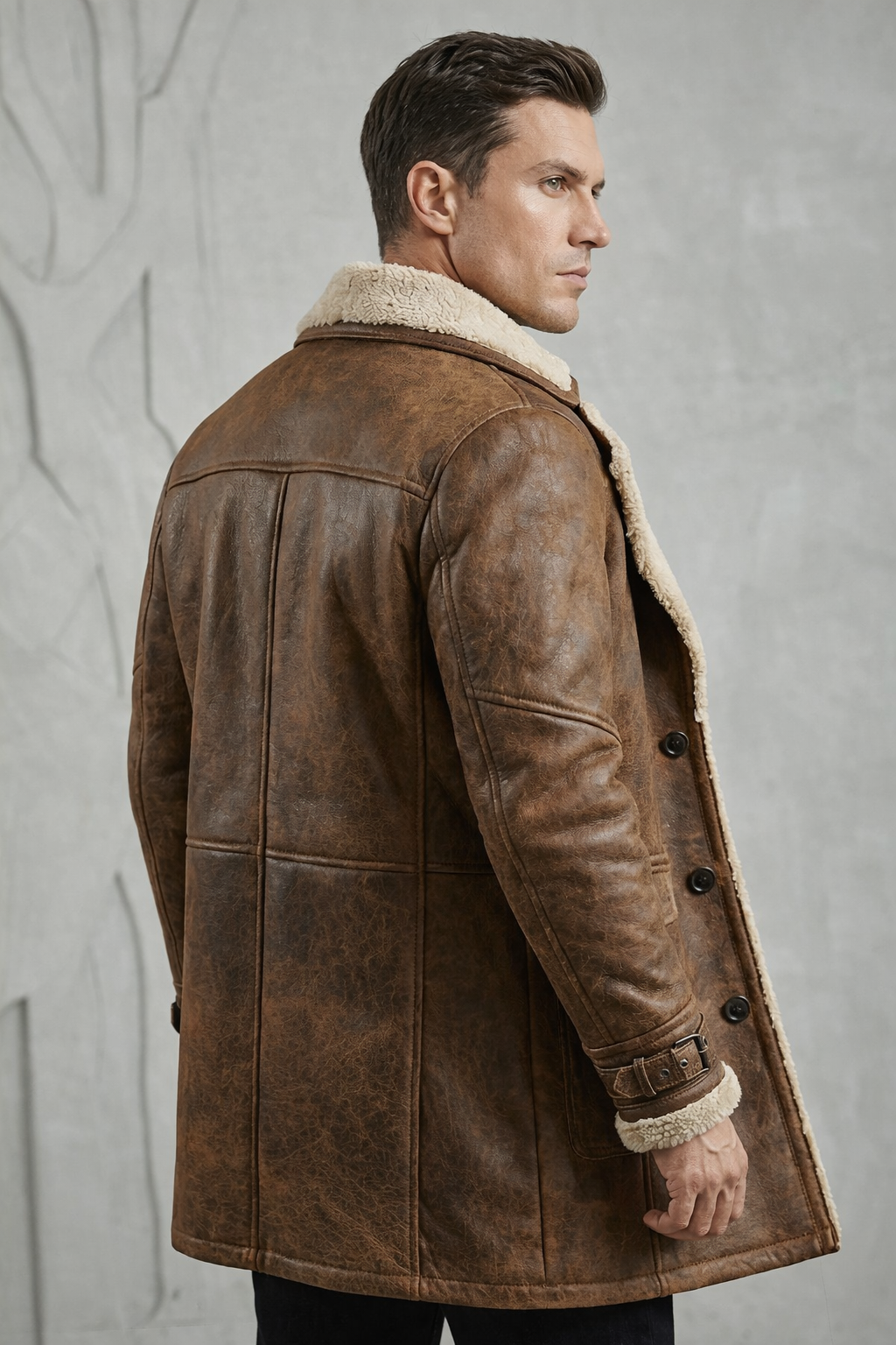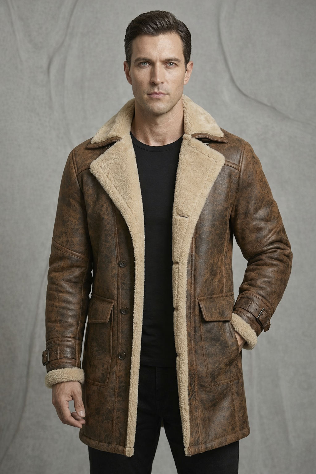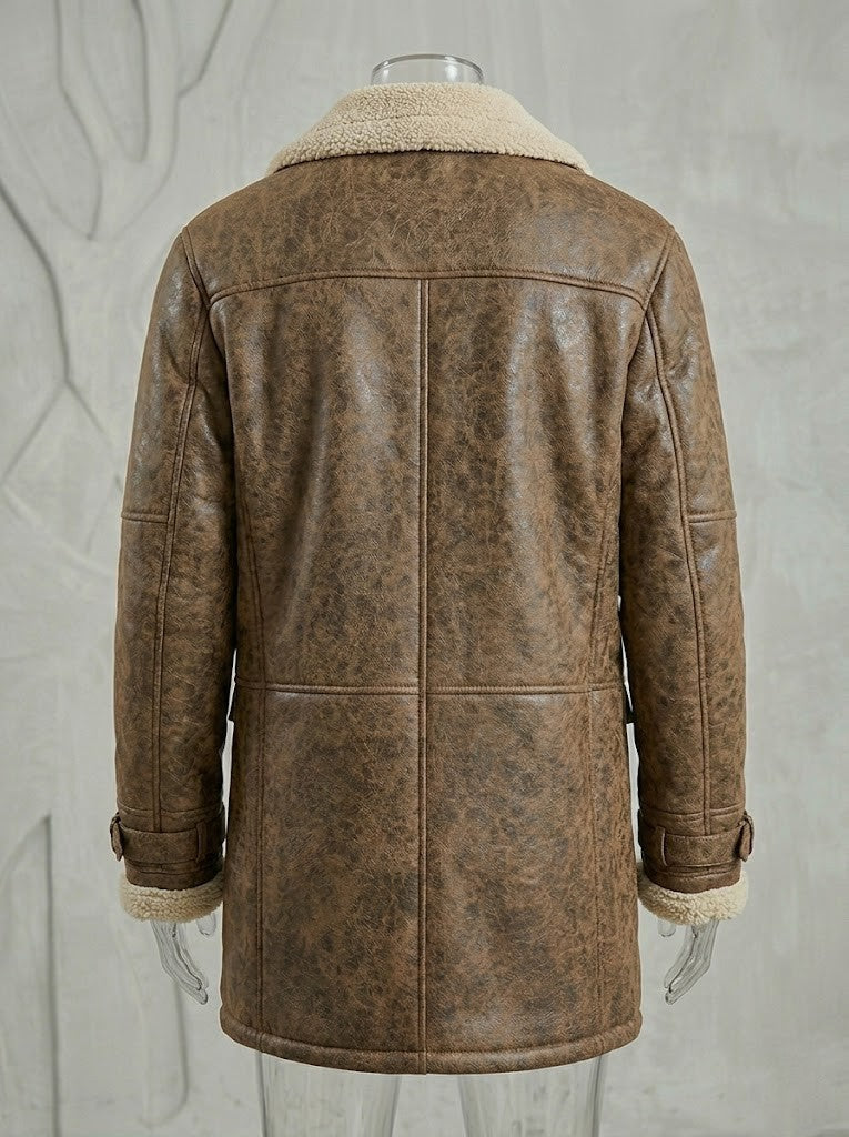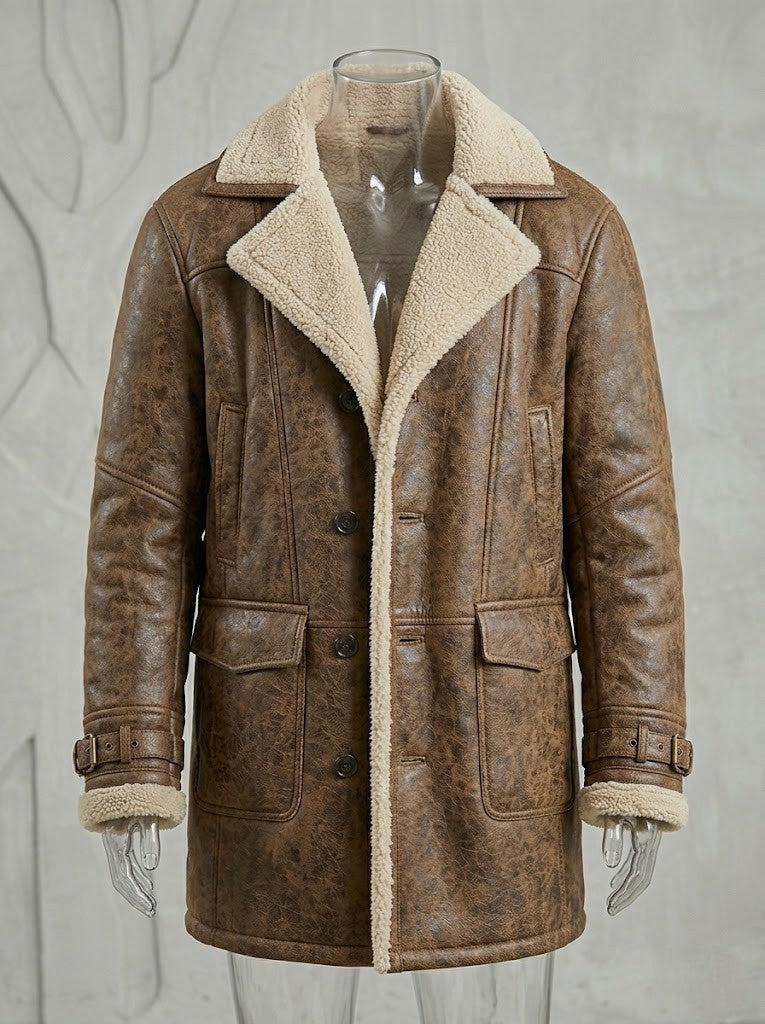 Abrigo de media estatura inspirado en el estilo aviador clásico, con interior afelpado que aporta abrigo y presencia durante los meses fríos. Su diseño combina estructura y comodidad en una silueta relajada que se adapta fácilmente a looks urbanos y casuales.