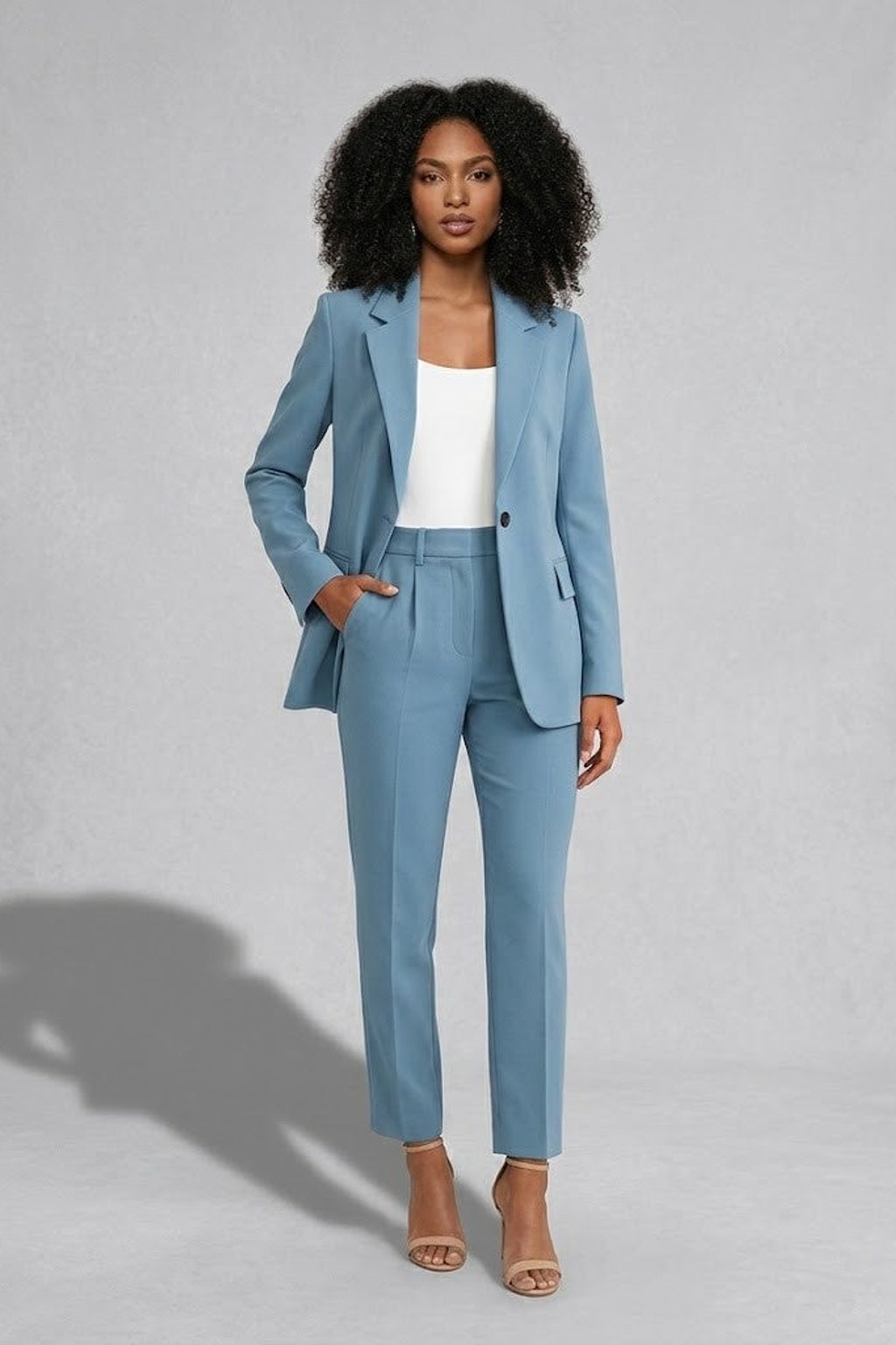 - Conjunto de dos piezas: blazer estructurado y pantalón recto