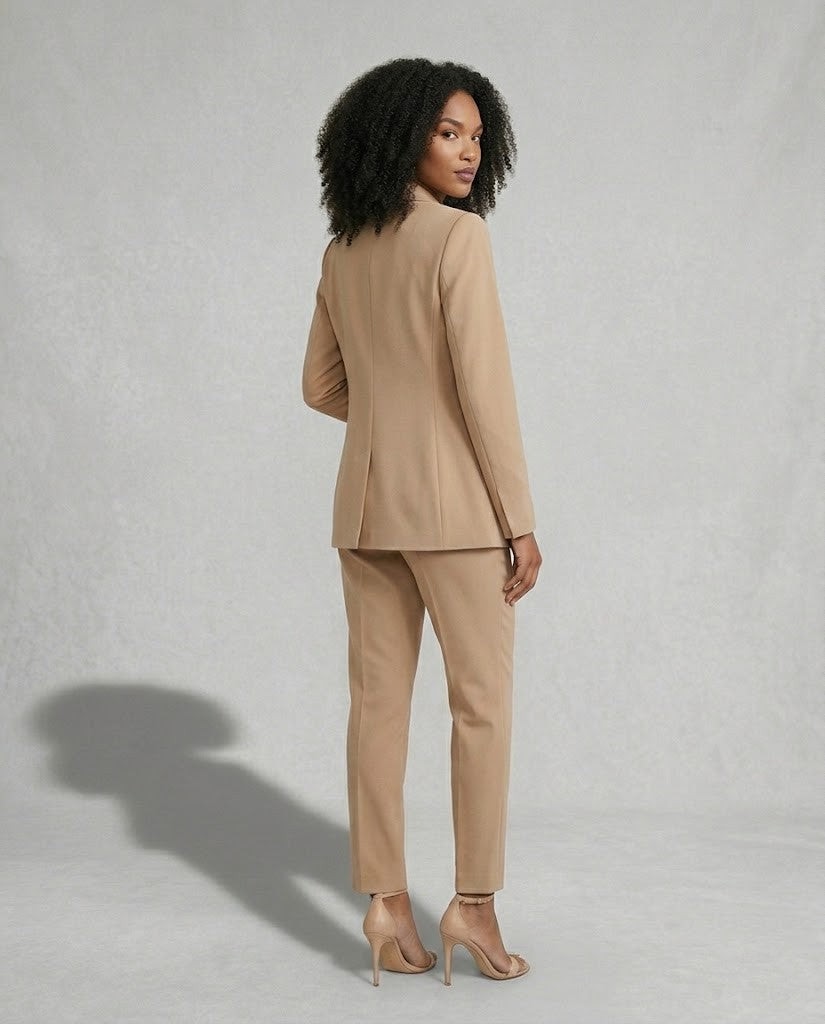 Elegancia estructurada para un look seguro y moderno. Este conjunto de dos piezas combina un blazer de corte definido con pantalón recto, creando una silueta limpia que estiliza la figura y transmite confianza en cualquier ocasión.
