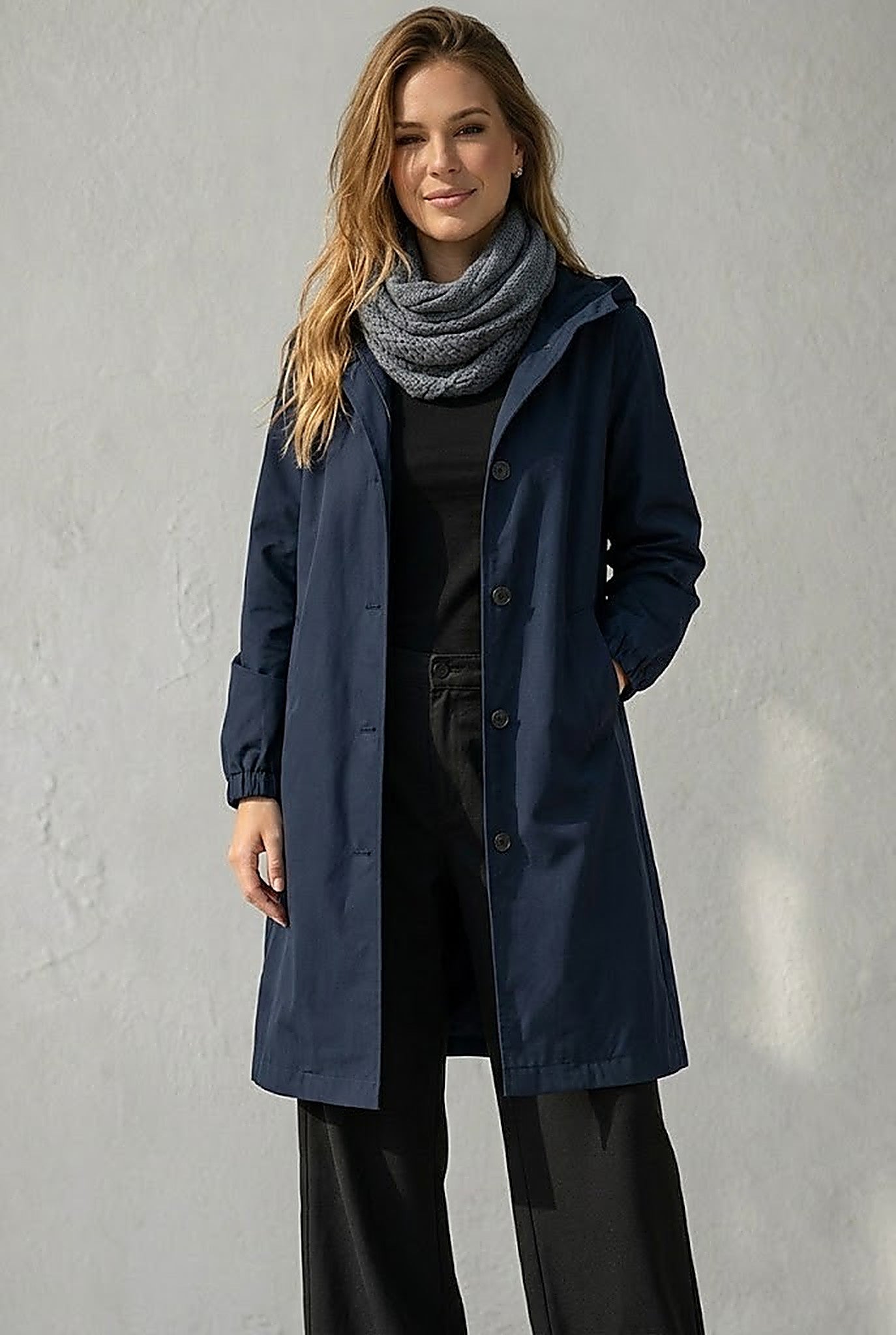 Una prenda pensada para acompañarte en días de clima cambiante sin renunciar al estilo. Su diseño largo y estructurado aporta una silueta elegante, mientras que la capucha integrada ofrece protección práctica frente al viento y la lluvia.