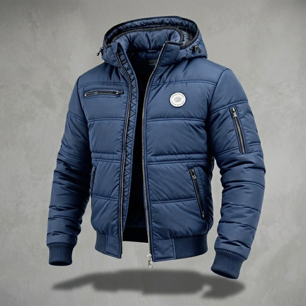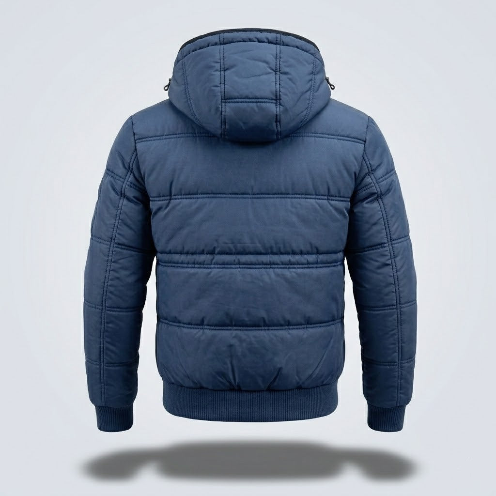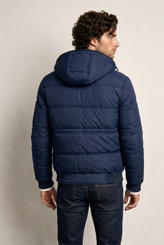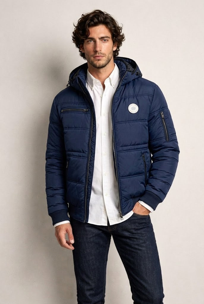 Chaqueta acolchada con capucha diseñada para días fríos y ritmo activo. Mantiene una silueta estructurada sin volumen excesivo y ofrece abrigo constante sin resultar pesado. Equilibrio entre estilo urbano y funcionalidad exterior. Funciona tanto para ciudad como para escapadas al aire libre.